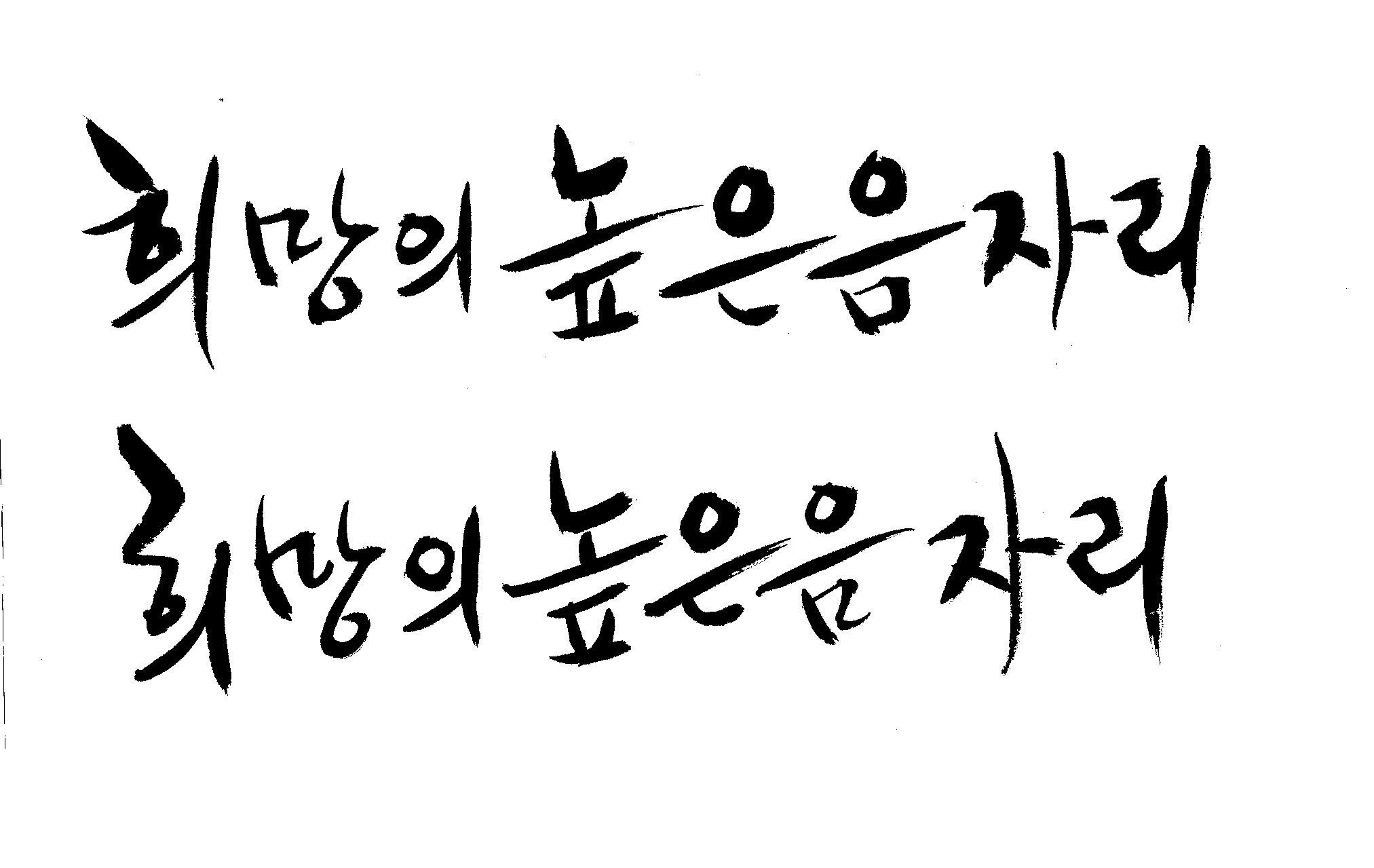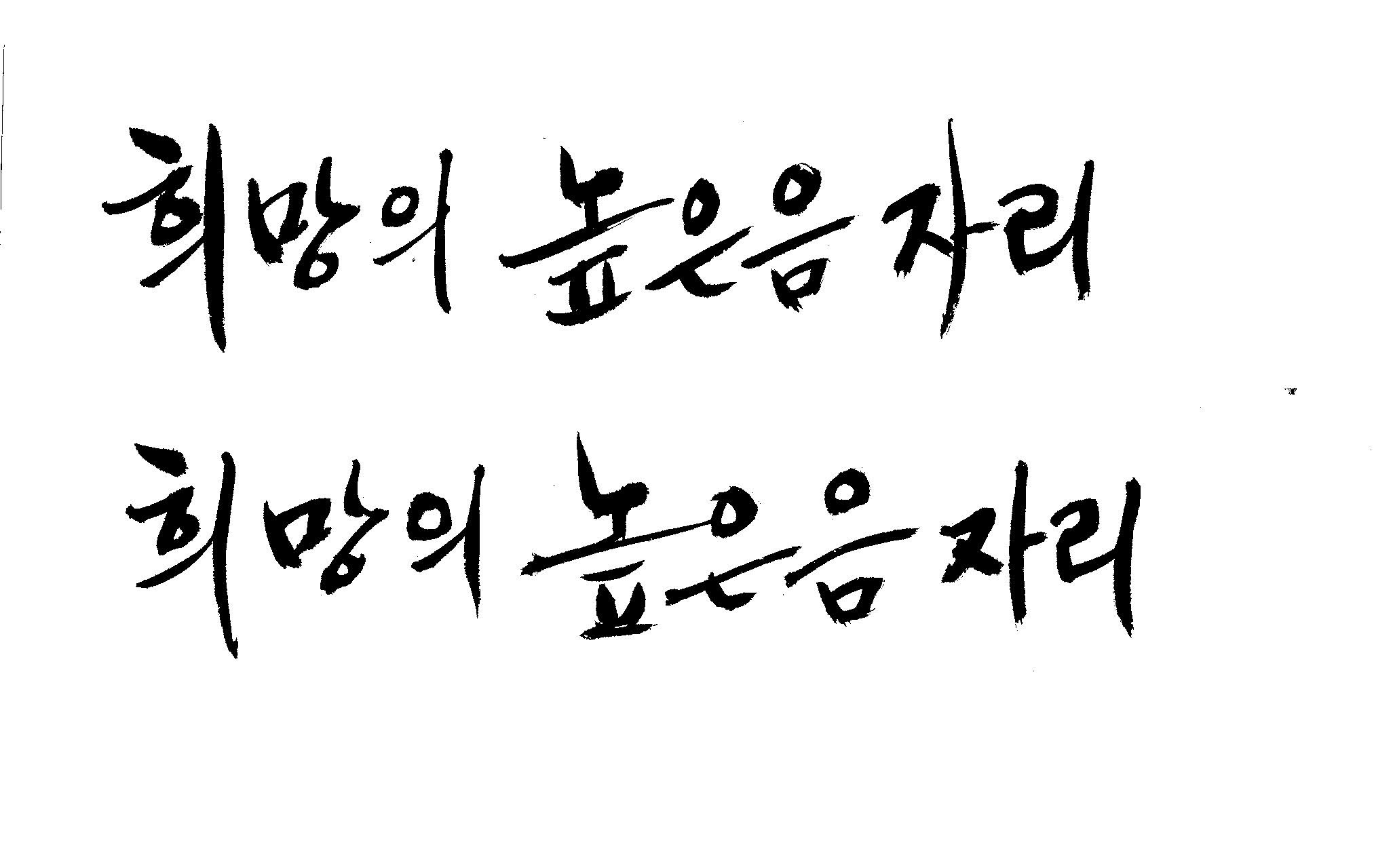 저도 캘리좀부탁이요 ^^;; 김철호 일반 0 6262 2009.01.14 10:59 > > > > > 희망의 높은음자리 > > > > 감사합니다 ^^ 꼭부탁드려욧 ㅎㅎㅎ > > > > 좋은 글이라서 신경썼는데 > 만족할 만큼 않나왔네요.. > 유용하게 쓰시길... >